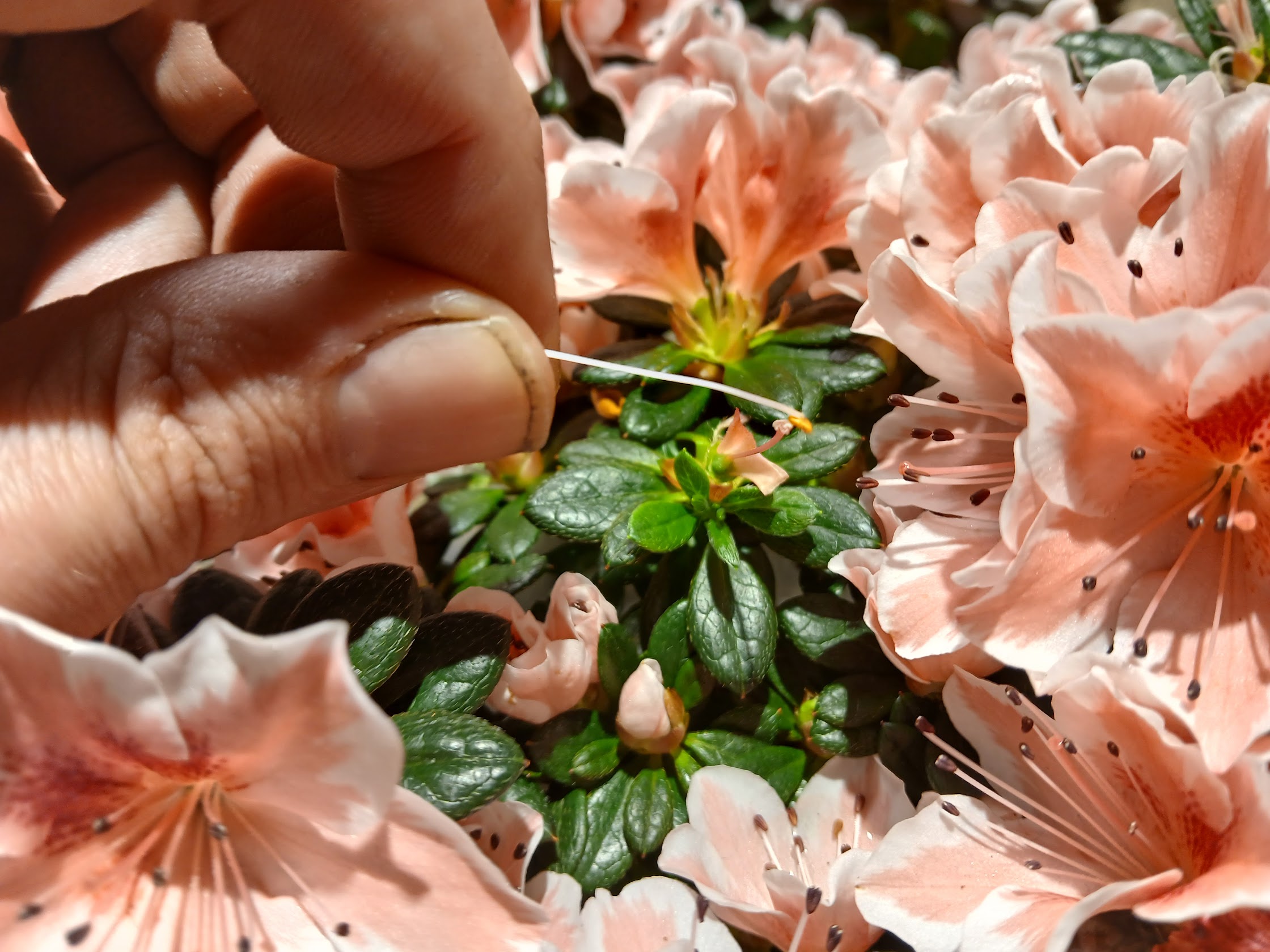 To make a cross we first need two azaleas that have just started to flower. One azalea will be the seed parent, the other azalea will provide the pollen.