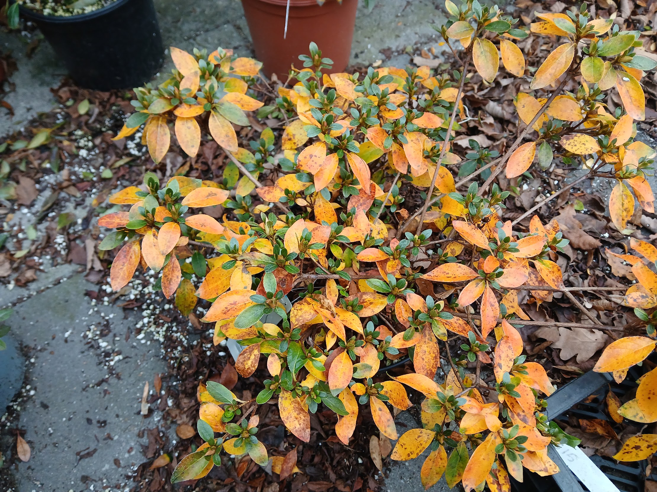 As a consequence, in late autumn or early winter without any low temperatures, the satsuki will not have achieved it's full hardiness yet.